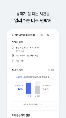 T114가 비즈연락처로 업그레이드 되어 AI가 해당 업체에 주로 어떤 사람들이 방문하는지, 언제 통화가 잘 되는지 알려줍니다