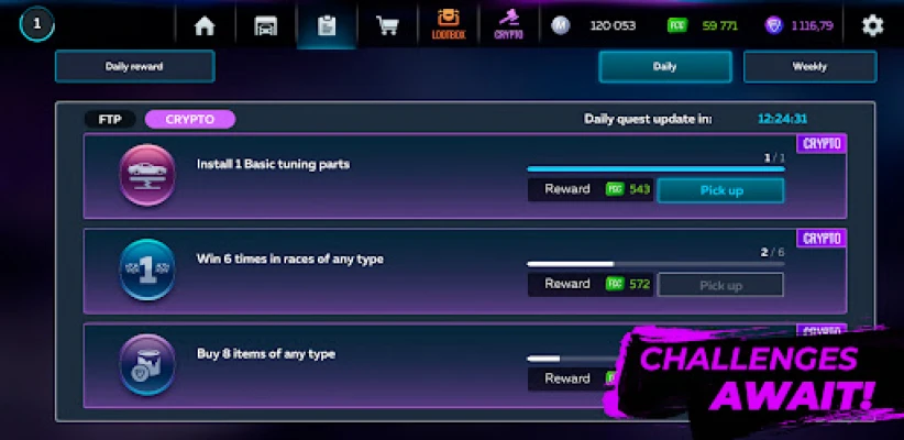 Complete daily in-game missions and claim prizes. Stock up on currency and spend it on buying and exchanging items on the platform. Manage your in-game assets as you see fit.
