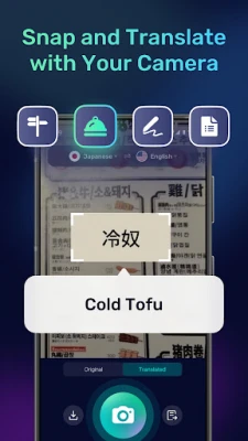 • Camera & Photo Translation: Take or upload photos to translate menus, signs, labels, posters, slides, device screens and more.