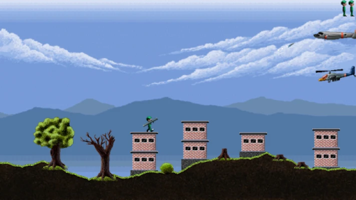 FEATURES ★ 3 different game modes ★ Coop multiplayer with gamepads ★ Infinite islands to play on ★ Destructible terrain ★ 9 different enemy aircraft and soldiers ★ Power ups ★ Nuclear bombs