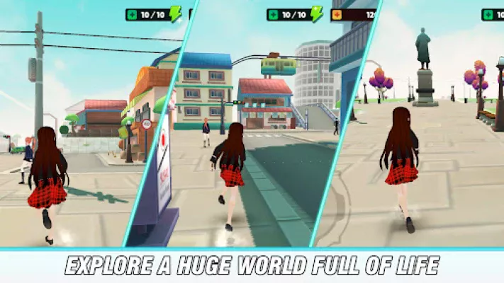 This is not only an anime school simulator, you got to explore and experience also a city life simulator! You can explore a huge city full of activities. Interact with friends and other people in this life simulator game.