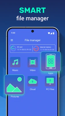 ● File manager - useful instrument for file management on your device. Wireless connection to any other device.