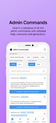 Find documentation for every Ark console command in an instant with our up-to-date admin commands database. Each command is complete with working examples and generators. The command generators allow you to adjust all of the parameters in app, outputting a working command for you to enter in-game.