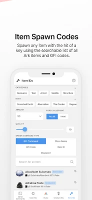 Your pocket tool for everything related to Ark: Survival Evolved admin commands, item IDs, creature codes and color IDs.