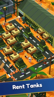 In Military Tycoon: Idle Gun Shop you can expand your army base and sell different guns and soldier supplies. Soldiers and commanders also need tanks and cars in the war. You can build and rent tanks to soldiers and make instant money to become a millionaire. You should complete your tasks to move to a new military zone. Build the best army with the strongest commanders and defeat enemy soldiers.