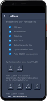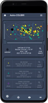 Real-time notifications: Astro-COLIBRI notifies you immediately via push notification as soon as a new transient phenomena is detected.