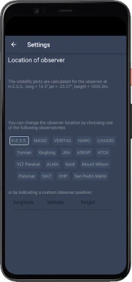 Observation planning: Astro-COLIBRI allows planning of optimal follow-up observations. It provides direct access to the visibility and weather conditions at all major astronomical observatories as well as user specified locations (e.g. your own backyard!) and thus enables quick and efficient planning of follow-up observations of the most interesting phenomena.