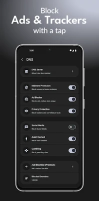 Stop ads and trackers before they load with powerful DNS filtering. Block ads in apps, games, and browsers system-wide.