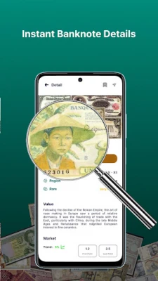Identify banknotes from a wide range of countries — ideal for travel or international transactions.