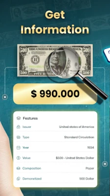 the application is an powerful mobile app that utilizes AI-driven image recognition technology to accurately identify any banknote or banknote in seconds!