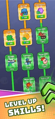 Place your soldiers and weapons inside your battle bag. Line them up, connect them right, and create your unstoppable army. Every weapon linked to a soldier brings them to life — rifles, shotguns, SMGs, you name it!