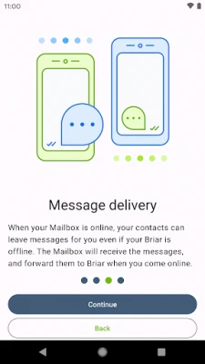 Briar Mailbox is a helper app for Briar messenger that lets you receive encrypted messages from your contacts while Briar is offline. Next time Briar comes online it will automatically fetch the messages from your Mailbox.