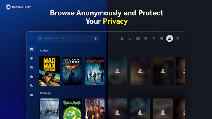 TV browser BrowseHere is one of the most UI refined TV internet web ad-block Videoplay browsers available for free for TCL Android TV and Android TV box and Android Set-top Box. You can easily stream movies, TV shows, anime, videos, download content seamlessly and surf the web without ads. With built-in Android TV OS support, it is fully functional with the TV remote. It includes features such as bookmarks, browsing history, search engines shortcut, fast downloading and cookies blockers.