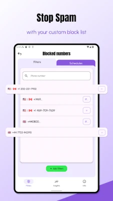 Only the incoming phone number is checked against your filters — all processing happens locally on your device, keeping your information safe and secure.