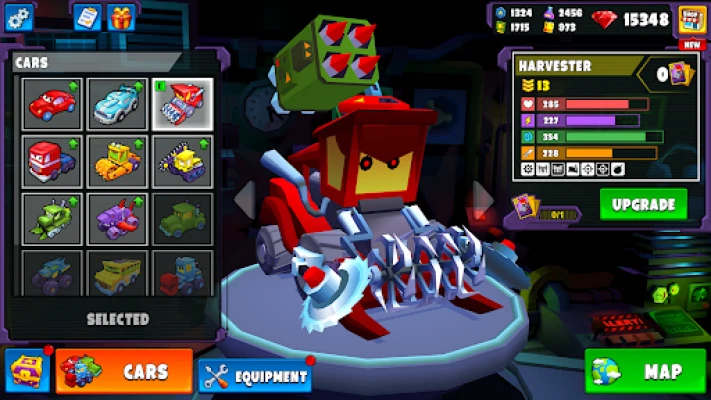- Upgrades for each car, improving turbo, speed, armor, and damage