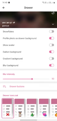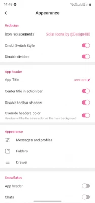 Appearance: You'll be able to fully modify drawer, center chat and app title like on IOS. Moreover, you can modify folder's design.