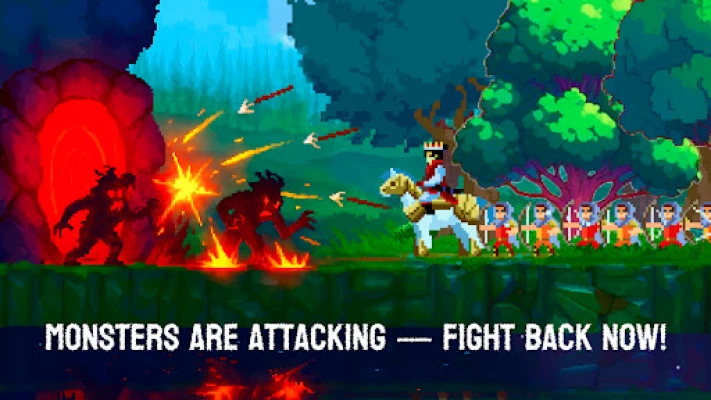 Face waves of enemies as night falls. Equip your army with swords, bows, and shields to protect your kingdom. Use tactical strategies to repel relentless invaders.