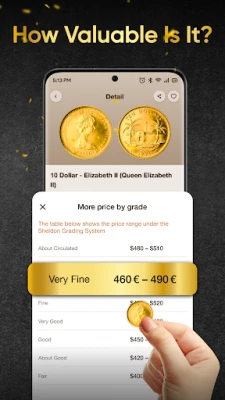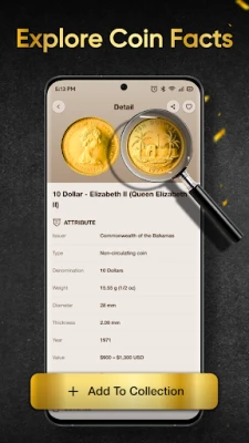 the application is an powerful mobile app that utilizes AI-driven image recognition technology to accurately identify any coin or stamp in seconds!