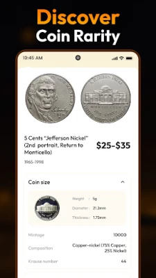 Coin Scanner: Take a clear picture of a coin and easily scan any coin for instant identification and detailed information.