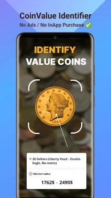 Coin Value Identifier & Scan is a powerful mobile app that uses advanced AI image recognition technology to quickly and accurately identify coins in just seconds! The process is simple: take a photo of your coin (or upload one from your gallery), and the app matches the image with its extensive database to provide detailed information. Each result includes the coin’s name, country of origin, year of issue, coin populations, and more.