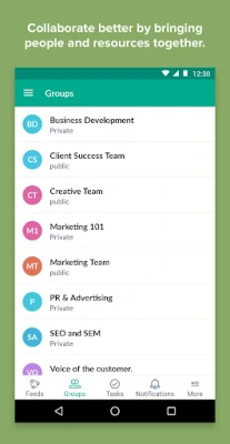 Start conversations with group members, participate in polls and group conversations, and stay up to speed on activities through Feeds.