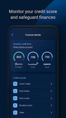 Real-time monitoring for identity theft, data breaches, dark web exposure, and credit changes, plus recovery support.