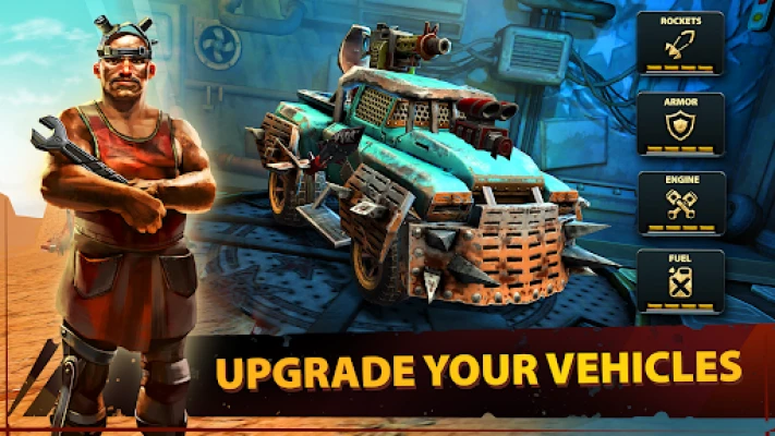 Fight with bosses to earn more resources. But know that they are the most dangerous enemies and always up for explosive racing battles! Your car must be ready and equipped with strong weapons to battle with them. Upgrade the weapons and armor on your motorbikes, cars and monster truck vehicles to defeat your race rivals and beat the ultimate end game boss