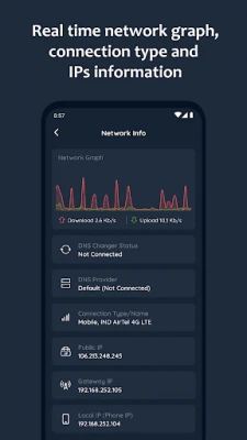 ✔ Gives Real time network graph, connection type and IPs information