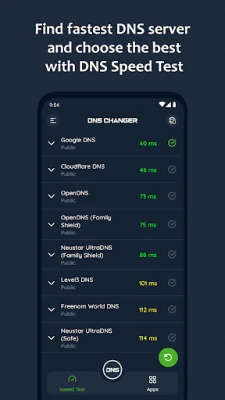 With DNS changer app, you can find fastest DNS server and simply connect to it with single touch.