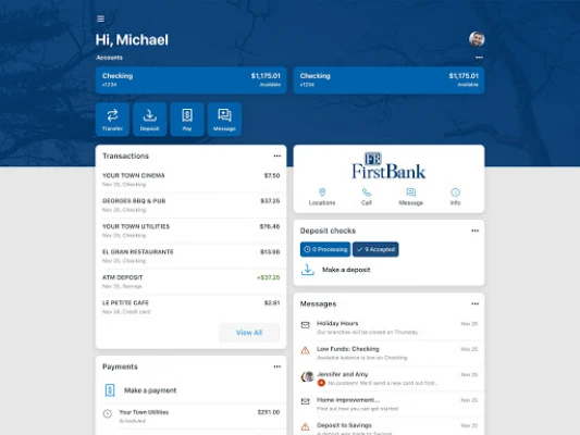FirstBank Mobile Banking is your personal financial advocate that gives you the ability to aggregate all your financial accounts, including accounts from other banks and credit unions, into a single view. It’s fast, secure and makes life easier by empowering you with the tools you need to manage your finances.