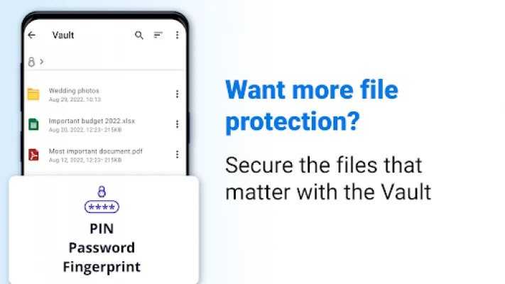 Hide the most sensitive files in the Vault! Our file explorer secures your personal photos and videos by locking them down with PIN protection, fingerprint authentication, or a password. The Vault is the only place for hiding personal pictures and videos. With File Commander’s Vault, you can protect your privacy & secure your files using the zero-knowledge encryption model.