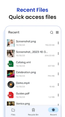 The File Manager app lets you easily organize files and documents in your phone. Whether you're organizing important documents, sorting through images, or managing your downloads, this app offers a simple solution to make your phone structured and easily access any file you want on your phone. View and navigate to any files —images, documents, videos, and more.