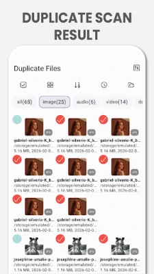 📊 Filter & Sort — organize duplicates by filename, size, or group them easily