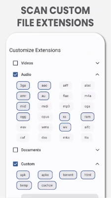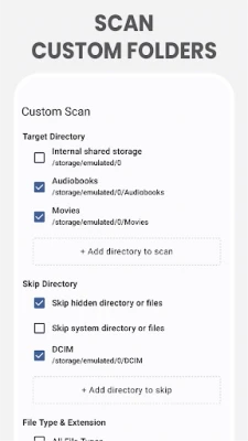 📸 Predetermined Scan — scan only what you need: photos, videos, audio, or documents