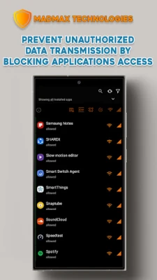 With the WiFi blocker feature, firewall security ensures that your device only connects to trusted networks. Control which apps can access mobile data or WiFi.