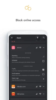 • Allow or block internet access per app (no root required)