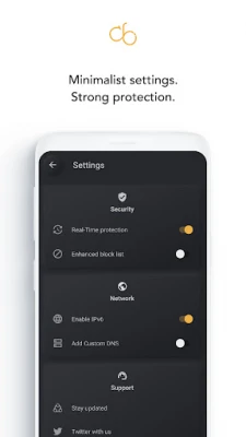 Filter lists can help you limit known tracking domains without manually maintaining every address. The DNS changer lets you switch to alternative DNS providers (often more privacy‑friendly) and quickly return to your default DNS if something does not work as expected.