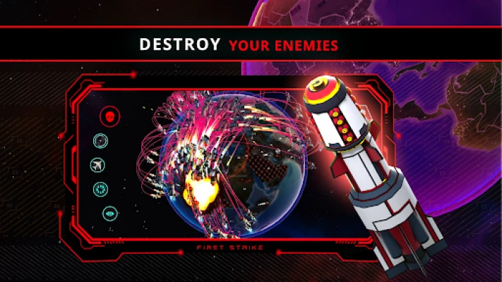 Dominate the world in First Strike! Intense 1v1 multiplayer RTS. Rockets fly in online battles for survival. Top the strategy games charts!Lead your nation to global dominance or annihilation in First Strike! This intense 1v1 multiplayer RTS puts you in command of a nuclear superpower. Launch rockets, manage resources, and outsmart rivals in online space battles. Every decision risks survival. Top the strategy games charts!