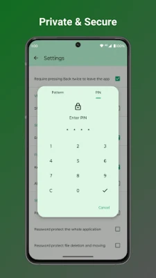• Secure sensitive files with password, pattern, or fingerprint locks for hidden items or the entire app.