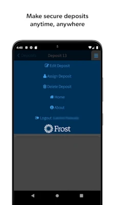 The Frost Commercial Mobile Deposit App allows you to make deposits remotely from your mobile device to your Frost commercial checking accounts anytime, anywhere.