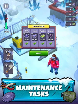 Craft weapons, set traps, and create safe zones. Managing your supplies is crucial as food and fuel dwindle in the endless winter.