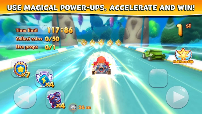 Collect coins on the tracks, speed up, use magical powers and abilities to outrun and beat your competitors.