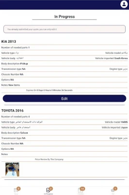 gig AutoParts is a mobile application that helps vehicle parts companies and workshops to compete and provide prices for vehicle parts required due to vehicle accidents insured by gig-Jordan via smart phones.