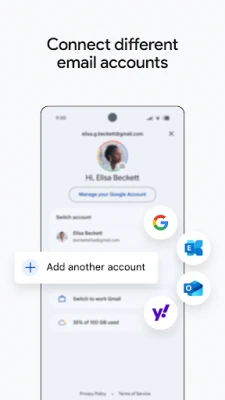 The official Gmail app brings the best of Gmail to your Android phone or tablet with enhanced security protections, multiple account support, and powerful search to find the details you need. Use the power of Google AI to help you write, organize, search, and clear your inbox even faster. Gmail is also available on Wear OS so you can stay productive and manage emails right from your wrist.