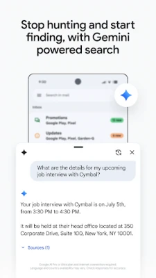 • Search your inbox with relevant keywords or ask Gemini* to find specific details from your inbox or Google Drive files