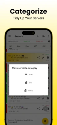 ●Smart Server Categories: Sort servers into Wi-Fi, SIM, and SIM 2 for faster access and better organization.