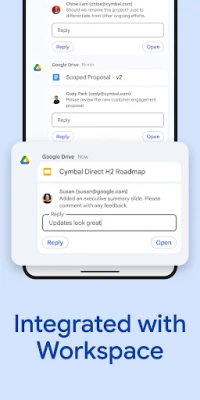 • Integrated with Workspace apps like Gmail, Calendar, Drive, Tasks, and Meet
