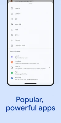 • Stay on top of requests, comments and approvals with the Google Drive app for Chat