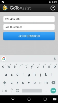 If your support representative emails you a session URL, you will be directed to the Google Play store to download this app. If your support representative gives you a 9-digit code, you will first need to download and install this app on your device.