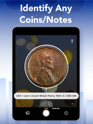 Identify the value of your coins and notes through photo identification. Expand your collection with every new item you discover.